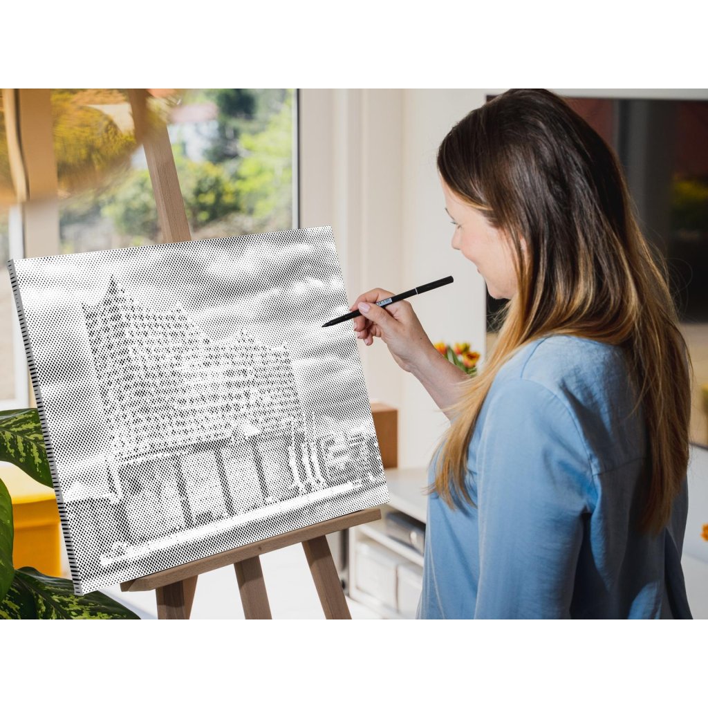 Gestalten Sie Ihr neues Designer-Gemälde mit Punkten! Wählen Sie einen Filzstift in Ihrer Lieblingsfarbe und punkten Sie die vorgedruckte Leinwand nach Ihrem eigenen Geschmack. Bestellen Sie die Variante mit Bilderrahmen, und hängen Sie Ihr einzigartiges Gemälde an die Wand. Eins steht fest, das Endergebnis ist ein beeindruckendes Meisterwerk, auch wenn Sie keinerlei Erfahrung im Malen haben. Punkt für Punkt entsteht ihr erstaunliches Kunstwerk.