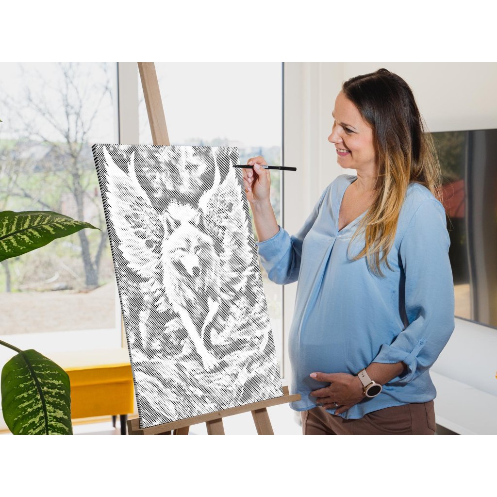 Bei der Punktmalerei muss man manchmal ganz sanft kleine Punkte setzen, aber es kommt auch vor, dass man Stift etwas stärker aufdrücken oder den ganzen Kreis ausmalen muss. Es dauert ein wenig bis Ihr Motiv auf der Leinwand zu erkennen wird. Aber sobald es Gestalt annimmt, werden Sie vor Freude und Begeisterung jubeln!