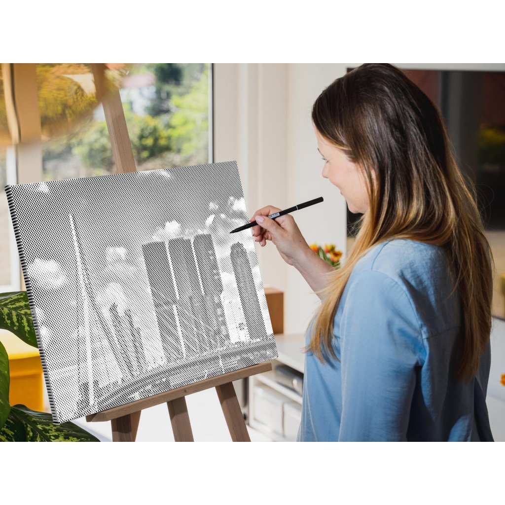 Gestalten Sie Ihr neues Designer-Gemälde mit Punkten! Wählen Sie einen Filzstift in Ihrer Lieblingsfarbe und punkten Sie die vorgedruckte Leinwand nach Ihrem eigenen Geschmack. Bestellen Sie die Variante mit Bilderrahmen, und hängen Sie Ihr einzigartiges Gemälde an die Wand. Eins steht fest, das Endergebnis ist ein beeindruckendes Meisterwerk, auch wenn Sie keinerlei Erfahrung im Malen haben. Punkt für Punkt entsteht ihr erstaunliches Kunstwerk.