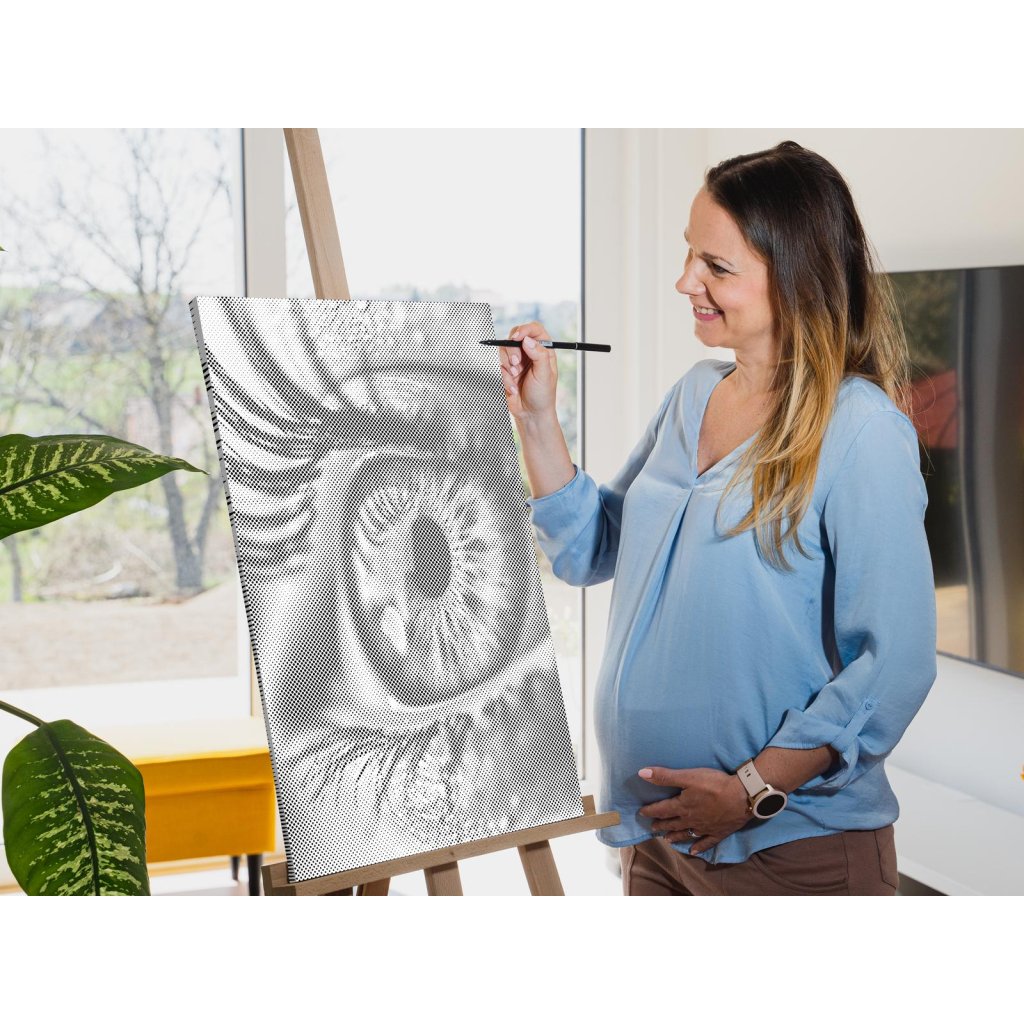 Gestalten Sie Ihr neues Designer-Gemälde mit Punkten! Wählen Sie einen Filzstift in Ihrer Lieblingsfarbe und punkten Sie die vorgedruckte Leinwand nach Ihrem eigenen Geschmack. Bestellen Sie die Variante mit Bilderrahmen, und hängen Sie Ihr einzigartiges Gemälde an die Wand. Eins steht fest, das Endergebnis ist ein beeindruckendes Meisterwerk, auch wenn Sie keinerlei Erfahrung im Malen haben. Punkt für Punkt entsteht ihr erstaunliches Kunstwerk.