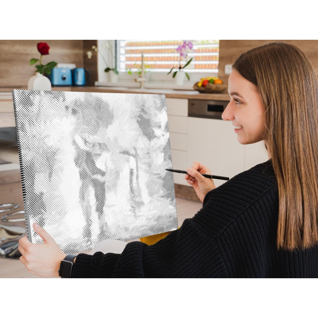 Gestalten Sie Ihr neues Designer-Gemälde mit Punkten! Wählen Sie einen Filzstift in Ihrer Lieblingsfarbe und punkten Sie die vorgedruckte Leinwand nach Ihrem eigenen Geschmack. Bestellen Sie die Variante mit Bilderrahmen, und hängen Sie Ihr einzigartiges Gemälde an die Wand. Eins steht fest, das Endergebnis ist ein beeindruckendes Meisterwerk, auch wenn Sie keinerlei Erfahrung im Malen haben. Punkt für Punkt entsteht ihr erstaunliches Kunstwerk.