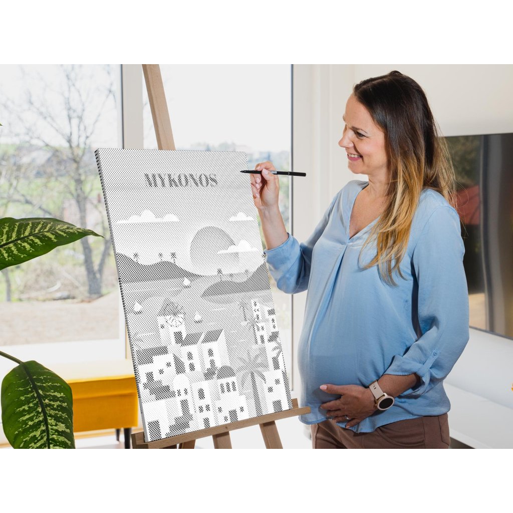 Gestalten Sie Ihr neues Designer-Gemälde mit Punkten! Wählen Sie einen Filzstift in Ihrer Lieblingsfarbe und punkten Sie die vorgedruckte Leinwand nach Ihrem eigenen Geschmack. Bestellen Sie die Variante mit Bilderrahmen, und hängen Sie Ihr einzigartiges Gemälde an die Wand. Eins steht fest, das Endergebnis ist ein beeindruckendes Meisterwerk, auch wenn Sie keinerlei Erfahrung im Malen haben. Punkt für Punkt entsteht ihr erstaunliches Kunstwerk.
