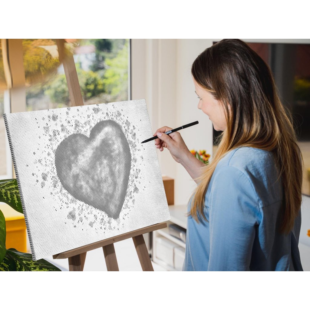 Gestalten Sie Ihr neues Designer-Gemälde mit Punkten! Wählen Sie einen Filzstift in Ihrer Lieblingsfarbe und punkten Sie die vorgedruckte Leinwand nach Ihrem eigenen Geschmack. Bestellen Sie die Variante mit Bilderrahmen, und hängen Sie Ihr einzigartiges Gemälde an die Wand. Eins steht fest, das Endergebnis ist ein beeindruckendes Meisterwerk, auch wenn Sie keinerlei Erfahrung im Malen haben. Punkt für Punkt entsteht ihr erstaunliches Kunstwerk.