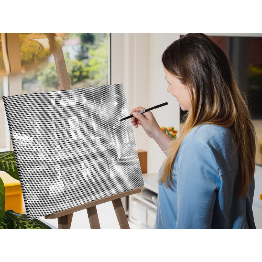 Gestalten Sie Ihr neues Designer-Gemälde mit Punkten! Wählen Sie einen Filzstift in Ihrer Lieblingsfarbe und punkten Sie die vorgedruckte Leinwand nach Ihrem eigenen Geschmack. Bestellen Sie die Variante mit Bilderrahmen, und hängen Sie Ihr einzigartiges Gemälde an die Wand. Eins steht fest, das Endergebnis ist ein beeindruckendes Meisterwerk, auch wenn Sie keinerlei Erfahrung im Malen haben. Punkt für Punkt entsteht ihr erstaunliches Kunstwerk.