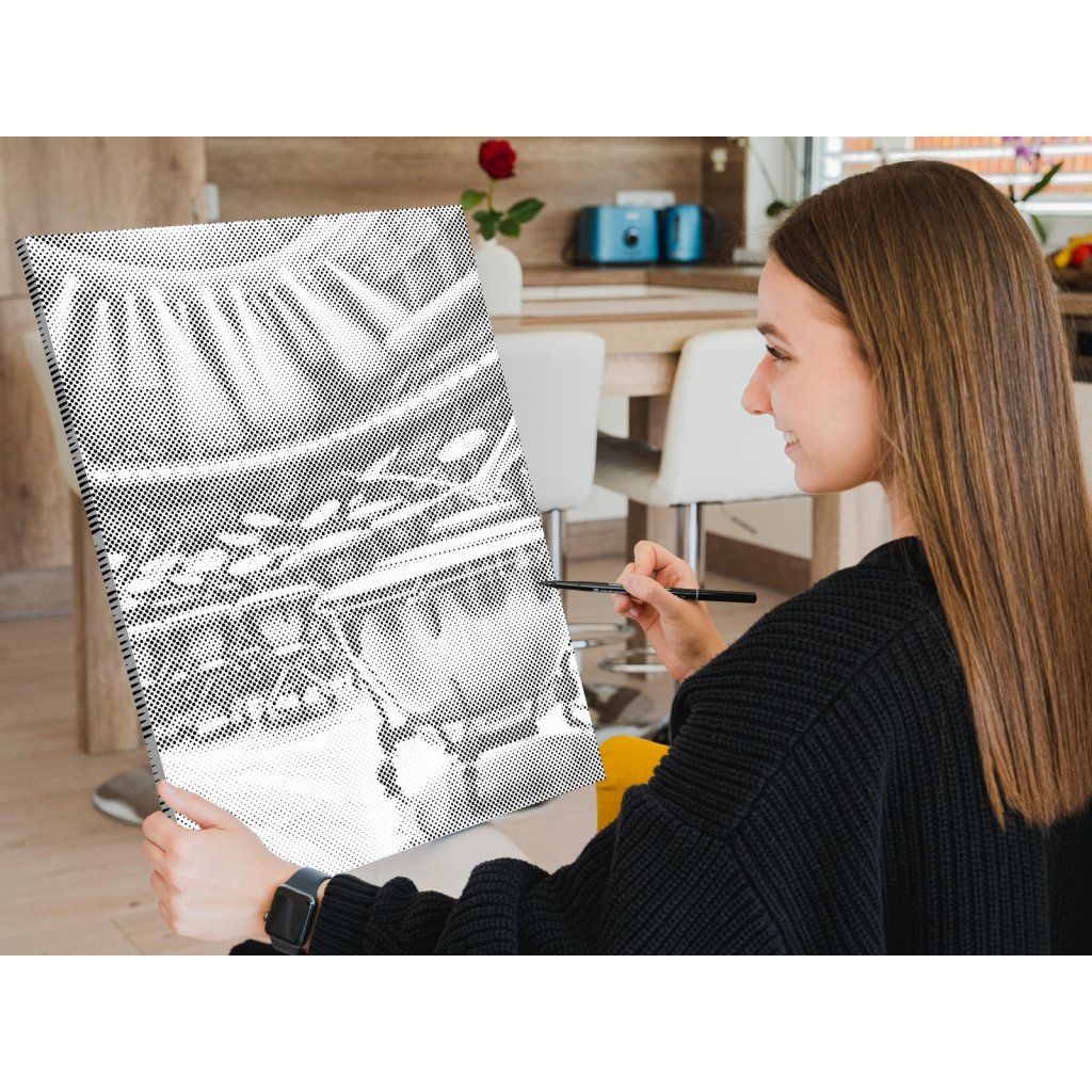 Gestalten Sie Ihr neues Designer-Gemälde mit Punkten! Wählen Sie einen Filzstift in Ihrer Lieblingsfarbe und punkten Sie die vorgedruckte Leinwand nach Ihrem eigenen Geschmack. Bestellen Sie die Variante mit Bilderrahmen, und hängen Sie Ihr einzigartiges Gemälde an die Wand. Eins steht fest, das Endergebnis ist ein beeindruckendes Meisterwerk, auch wenn Sie keinerlei Erfahrung im Malen haben. Punkt für Punkt entsteht ihr erstaunliches Kunstwerk.