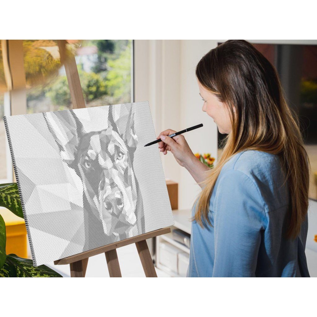 Gestalten Sie Ihr neues Designer-Gemälde mit Punkten! Wählen Sie einen Filzstift in Ihrer Lieblingsfarbe und punkten Sie die vorgedruckte Leinwand nach Ihrem eigenen Geschmack. Bestellen Sie die Variante mit Bilderrahmen, und hängen Sie Ihr einzigartiges Gemälde an die Wand. Eins steht fest, das Endergebnis ist ein beeindruckendes Meisterwerk, auch wenn Sie keinerlei Erfahrung im Malen haben. Punkt für Punkt entsteht ihr erstaunliches Kunstwerk.
