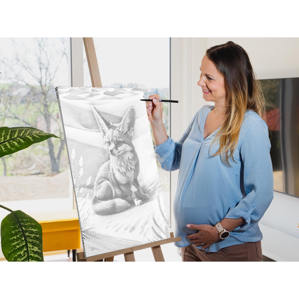 Gestalten Sie Ihr neues Designer-Gemälde mit Punkten! Wählen Sie einen Filzstift in Ihrer Lieblingsfarbe und punkten Sie die vorgedruckte Leinwand nach Ihrem eigenen Geschmack. Bestellen Sie die Variante mit Bilderrahmen, und hängen Sie Ihr einzigartiges Gemälde an die Wand. Eins steht fest, das Endergebnis ist ein beeindruckendes Meisterwerk, auch wenn Sie keinerlei Erfahrung im Malen haben. Punkt für Punkt entsteht ihr erstaunliches Kunstwerk.